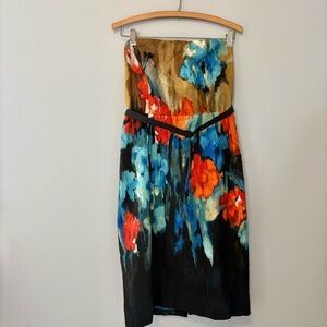 Moulinette Soeurs Strapless Silk Blend Watercolor Floral Dress Sz 8