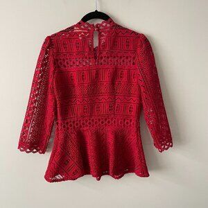 Moulinette Soeurs Tamera Geometric Lace Peplum Top 3/4 Sleeves Red 0 : Used and in good used condition