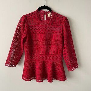 Moulinette Soeurs Tamera Geometric Lace Peplum Top 3/4 Sleeves Red 0