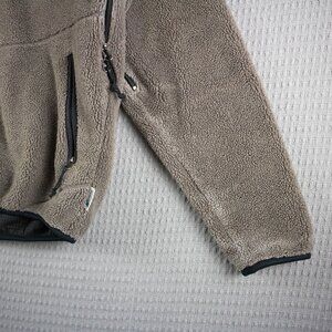Condition: Inner lining has a sort of deterioration where some of the piling sometimes rubs off particles, also fleece has signs of wear as pictured. Small hole on sleeve.