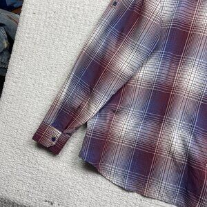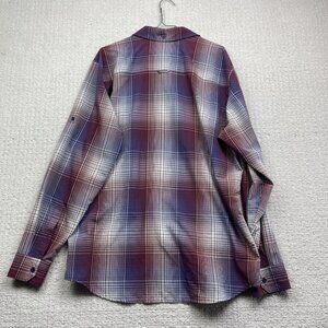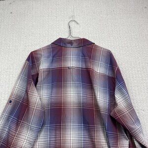 Mountain Equipment Co-op MEC light Hiking Button Shirt Men L Plaid Red / Blue