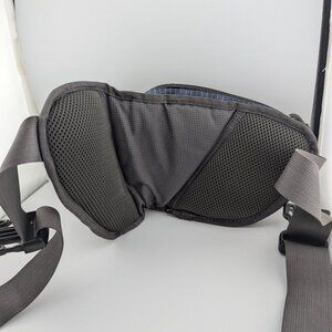 The back is padded and ventilated for comfort, while the adjustable waist strap ensures a secure fit for active use. Ideal for day hikes or city exploring, this hip pack gives off a no-fuss, outdoor-focused vibe with its signature MEC design in grey and blue technical fabrics.