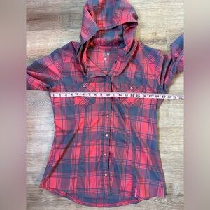 • Style: Hooded shirt with pearl snap buttons