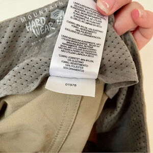 Mountain Hardware Women's Bermuda Hiking Shorts. Tan. Nylon/elastane blend makes it very lightweight and quick drying as well as have a stretch material perfect for all kinds of movement. Zippered pockets. Adjustable waist belt. Size 6. Excellent condition.