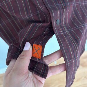 ⭕ Mountain Hardwear Mens XL Long Sleeve Red Striped Snap Western Shirt Pocket