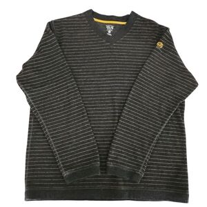 Mountain Hardwear Striped Wool Blend V-Neck Sweater – XL – Grey/Yellow – Outdoor
