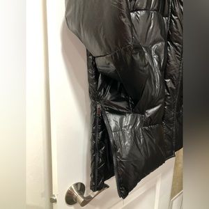 Size Lg,black,zip front with zipper pockets,zip off hood,zippers on each side to allow for venting or extra comfort..Some items I sell are for others or have been picked up at consignment stores so I may not know the entire history of the item such as being exposed to pets or smoke and so on.