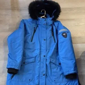 Stay warm and stylish with this vibrant blue hooded jacket. Perfect for chilly days. okay.