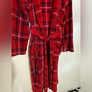 Mountain Ridge men vintage plaid fleece red black and white robe size S-M or MP