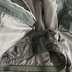 Front zip pockets, chest zip pocket, sleeve zip pocket, Inside mesh pocket, thumb holes, full zip closure, hood.