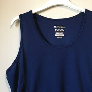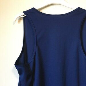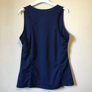 Very good preowned condition, dark blue, stretchy, sleeveless ISOCOOL tank top by Mountain Warehouse. Nicely tailored, lightweight and comfortable work out attire.