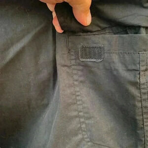 These lightweight hiking pants are 35% cotton and 65% polyester. They have two slit pockets in the front as well as a zippered pocket on the back. Velcro pocket on the side of the pant leg will keep items secure.