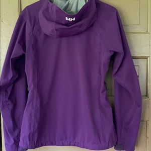 Beautiful purple 4way stretch soft shell type jacket . Moves with you light and packable. Love this jacket it just no longer fits me . Well loved but still has a lot of life left.