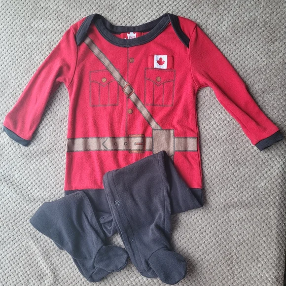 Red and black sleeper with mountie uniform print for your little canadian. GUC.