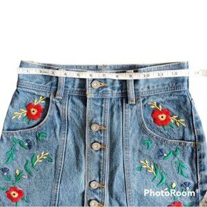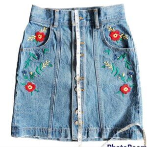 Moussy Button Down Floral Embroidered Denim Skirt Size S