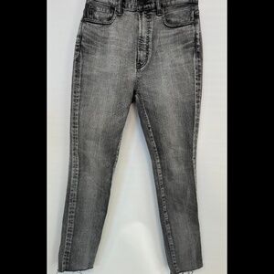 Moussy Vintage Gray cotton blend highwaist Jeans, frayed hem. Zip and button closure.