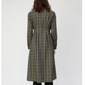 Moussy Waist Tuck Green Plaid Midi Shirt Dress Pleated with Pockets 1 or Small