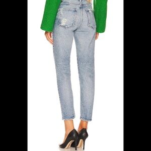 . Machine wash recommended. Zip fly with button closure. 5-pocket design. Light whiskering and intentionally destroyed areas. 13" / 33 cm at the knee narrows to 10" / 25 cm at the leg opening, the hem has been cut