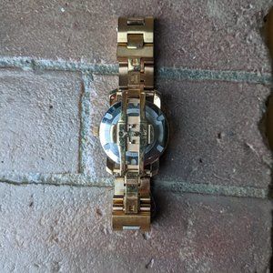 Movado BOLD, 36mm pale rose gold ion-plated stainless steel case and bracelet with blush ceramic centerlinks & pale rose gold-toned dial. Swarovski crystal circle in watch face. Water resistant up to 30m. Needs to have the battery replaced.