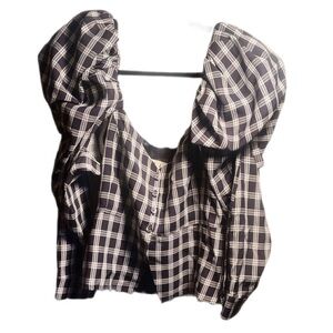 Mr Larkin “Penelope” puff sleeve checkered crop button up mid sleeve top L