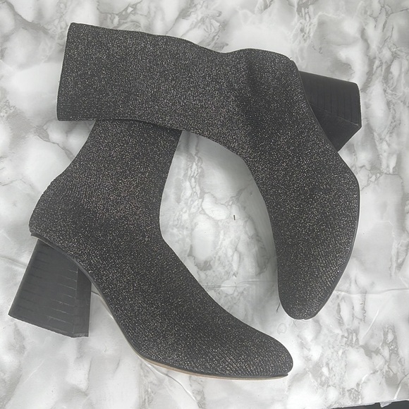 Mr Merna Sparkle Plush Cloth Sock Ankle Booties With Trapeze Heel Size 38