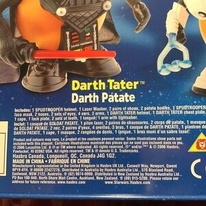 Bring a galaxy far, far away to your collection with this Mr. Potato Head Star Wars 3-piece collectors set from 2006. Includes Darth Tater, Spud Trooper, and Artoo-Potatoo in the original collectible metal case. Brand new and never opened, this set has been stored for over 16 years.