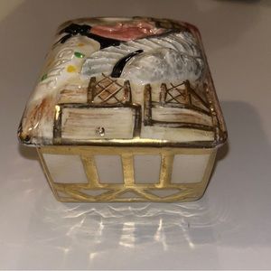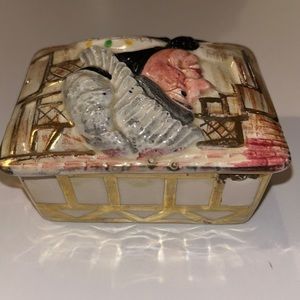 T.H. Sandland Antique Trinket Box 'Mrs. Gamp'. Sairey Gamp, Mrs. Gamp as she is more commonly known, is a nurse in the novel Martin Chuzzlewit by Charles Dickens, first published as a serial in 1843–1844. It has become a huge collector's item over the years because of Charles Dicken's value.