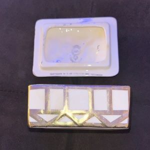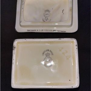 The inside Hallmark is "Lancaster Sandland Hand Painted in England by T.H. Sandland" which is on the inside of the lid and on the bottom with the number #424