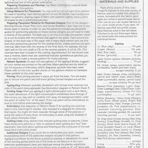 You can enjoy a garden's bounties year-round by sewing this delightful scene in applique, patchwork, embroidery and quilting. In addition to the fruits, vegetables, flowers, gardening tools, and garden visitor shown in the 52 inch square quilt. This pattern includes 10 more designs as well as these to incorporate or substitute in your own quilted garden. The quilt was designed by Sue Ficca and Pat McClure.