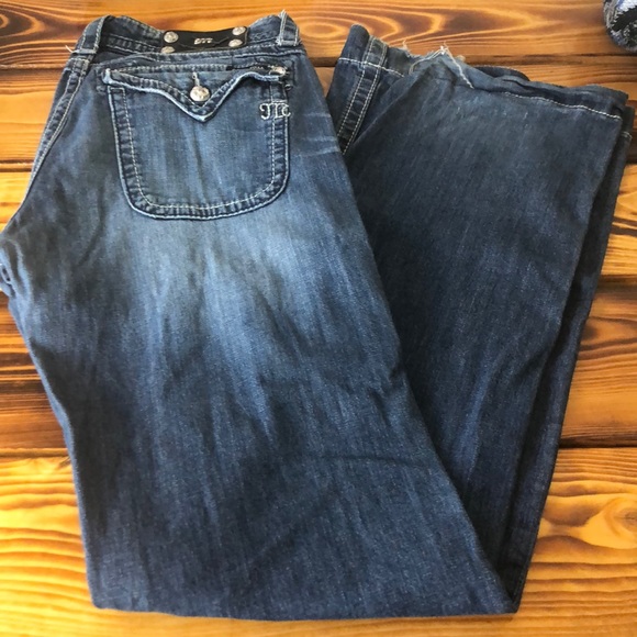 waist 31 Wide leg bootcut I’m unsure of actual length but it’s for sure over 31 some damage to the bottom cuff but lots of life left