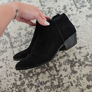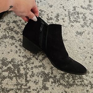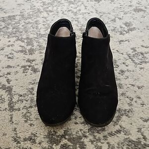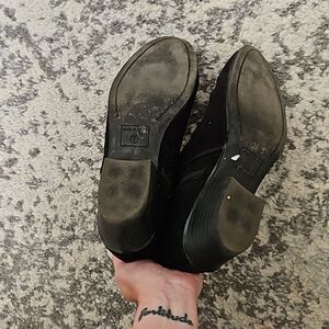 rounded point toe, zipper closure, low heel, super comfy, guc, some wear on heels otherwise good condition, see images for detail
