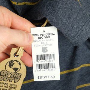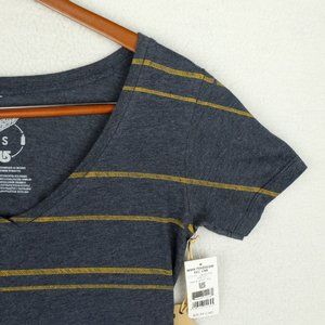 Mtn Dew Womens Shirt Top Small Gray Yellow Stripes V Neck Recycled Stretch