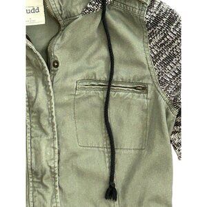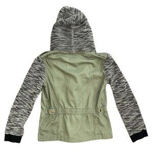 Mudd Cotton Hooded Collared Button Up Long Sleeve Jacket Green/Black Medium