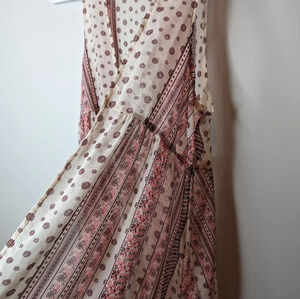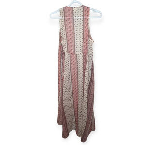 Mudd Pink & Cream Hippie Boho Sheer Duster Sleeveless Cover Up OS / Small Women
