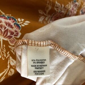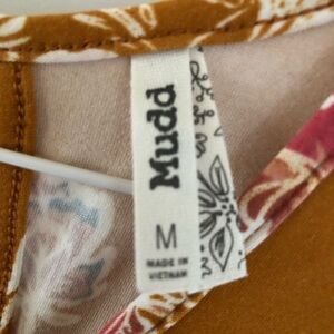 MUDD floral print cut out back, long sleeve dress. Soft stretchy jersey-like fabric, polyester & spandex. Full skirt for a flattering look while being comfortable. Mustard yellow colour. Excellent condition.