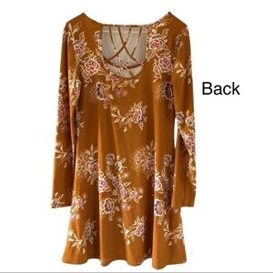 Mudd floral dress cut out back, long sleeve midi tunic dress. Mustard yellow M