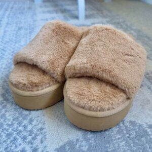 Muk Luks Kirstey Tan Fuzzy Platform Slippers NWOT
