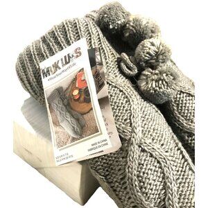 Muk Luks Mens Cable Knit Slipper Socks With Pom Poms & Tassels Small 5 - 7.5"