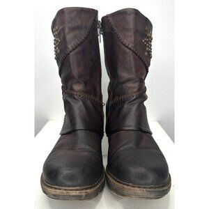 Muk Luks Womens Amelia Mid Calf Boots Faux Leather Water Resistant Brown Size 9