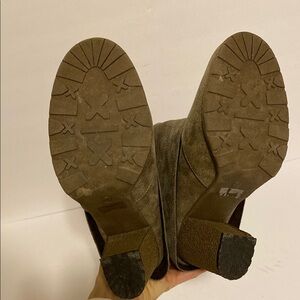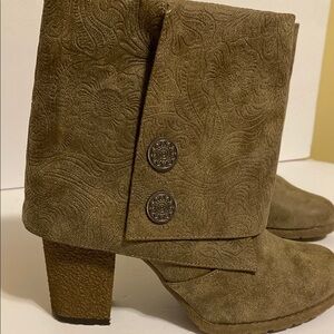 Muk Luks Women's Beige High Heeled Ankle Boots Chunky Embossed Boho Fold Over