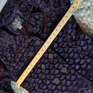 Mulberry Street women's purple button down pea coat,very elegant, mermaid tail pattern.