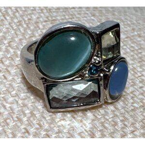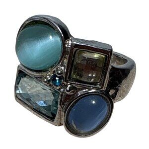 Multi Gemstone Silver Statement Ring With Aqua & Blue Stones Stunning Size 6.5
