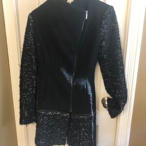 Laundry made this interesting wool blend coat. The bottom part unzips so it can be short or longer. Size medium PTP 21”. Adorable with belt.