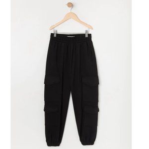 Urban Kids Black Multi Pocket Cargo Jogger. Unisex. Size: M 10/12. 100% Polyester.