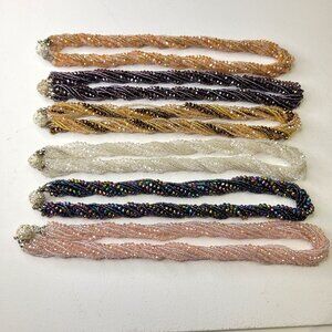 Multi Strand Braided Necklace Glass Bead Braided Necklace Beaded Twist Necklace