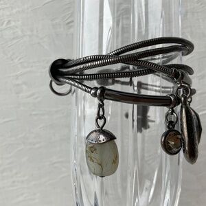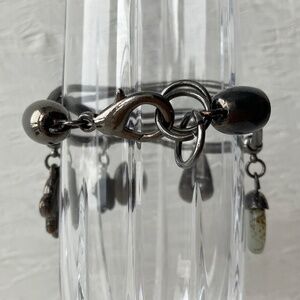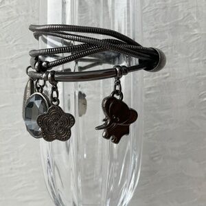 Gunmetal grey charm bracelet with gems, stone & elephant