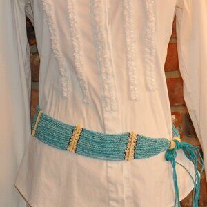 Multi Strand Hand beaded Turquoise & Bone Statement Necklace (Hip Hugger Belt)