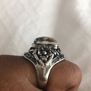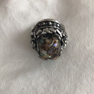 Size 5 ring Multicolour main stone Marcasite stones on side details Silver metal