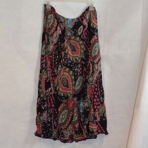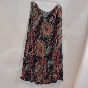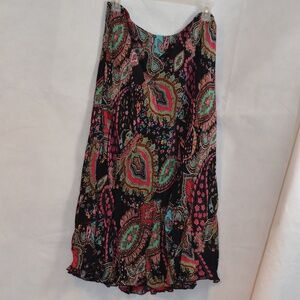 Beautiful! The colors are bright and luscious! Pink Black blue yellow, red, green! Elastic waist, full skirt. NWOTSZ 1X