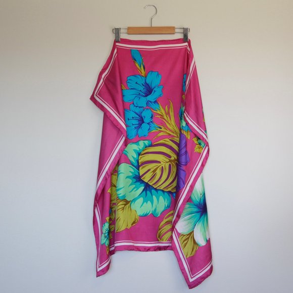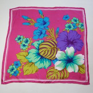 This is a floral print square scarf. Gorgeous colours, and would certainly add a nice pop to your outfit or handbag.